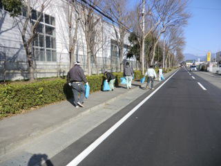 | 内 容 : | 山梨県甲府市国母工業団地内周辺道路の路肩を中心に空き缶、ゴミ拾い・落ち葉拾い。 山梨県釜無工業団周辺道路の路肩を中心に空き缶、ゴミ拾い。 |